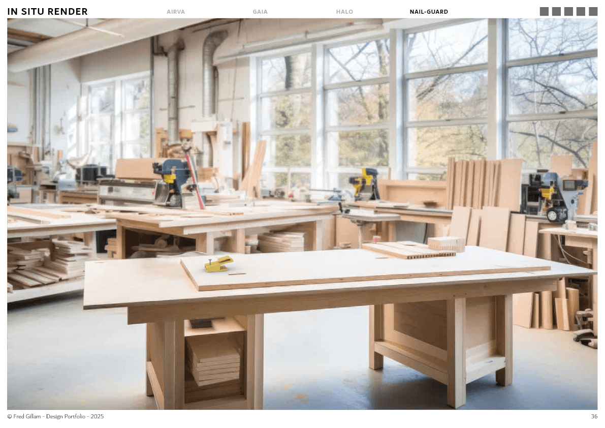 Nail Guard was developed to address the common difficulty and risk involved in holding nails or screws while hammering, particularly for children, older users, or those with limited dexterity. Research highlighted how easily users can injure their fingers and the lack of simple tools designed to improve safety and control during basic DIY tasks.
